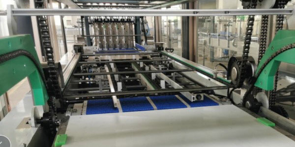 - Working flow: open power supply switch, cross film, choose manual film cutting, after one time film cutting success, then choose auto, machine start to operate. Product via bottle split flow facture, guiding fracture, bottle separate fracture, bottle handing film lifting up fracture, film wrapping fracture, at last via shrink tunnel, then finish whole film wrapping package working.